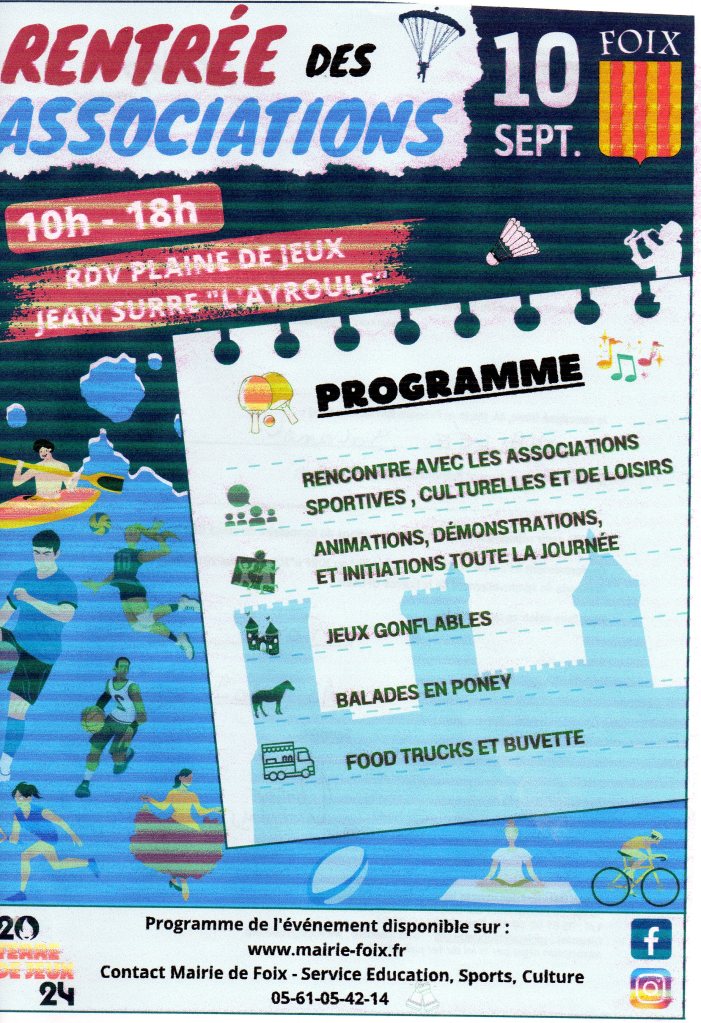 Nous tiendrons également un stand à la « rentrée des associations » le samedi 10 septembre au stade de l’Ayroule à Foix.